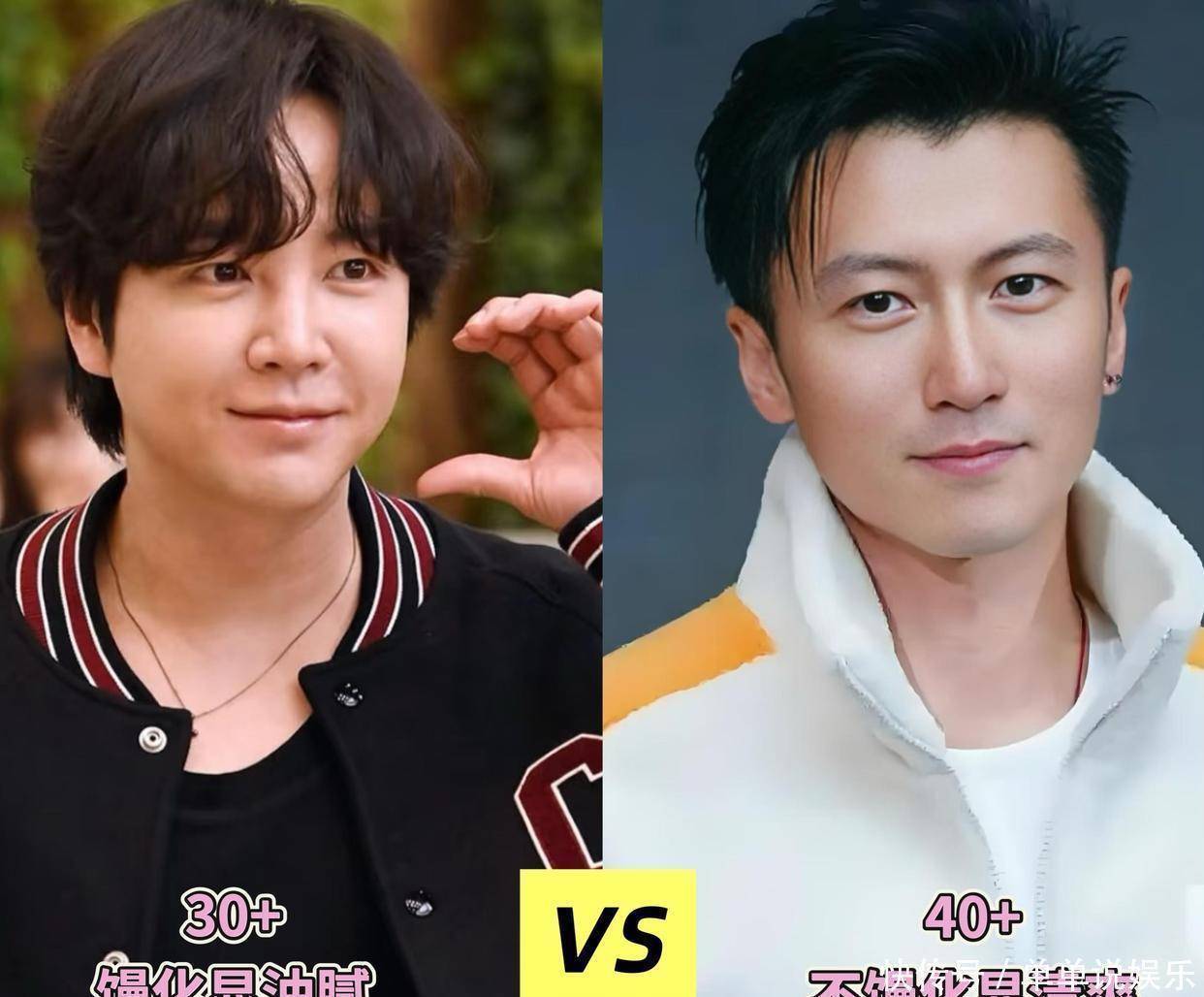 馒化脸最让颜值受影响的地方就是特别容易显得油腻,不信你看看下面的对比,张根硕虽然还不到四十,但馒化之后已经失去了少年时的清新感,反倒多了一份油腻,脸上浮肿,法令纹也变得更深,下巴轮廓不那么明显了,颜值一跌再跌。相反,四十多岁的谢霆锋没做医美,骨相还挺抗打的,即使到了大叔这个阶段,依然散发出清爽的气质。