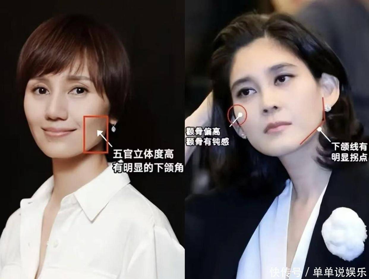 所以,要是骨架不错的人,她们的脸就不容易变馒头似的啦。判断骨相好不好,可以看五官的折叠程度、立体感,再加上轮廓线条。五官折叠得越厉害,鼻梁高、眉骨突出、下颌线那个拐角也挺明显的,就说明不太容易馒化。