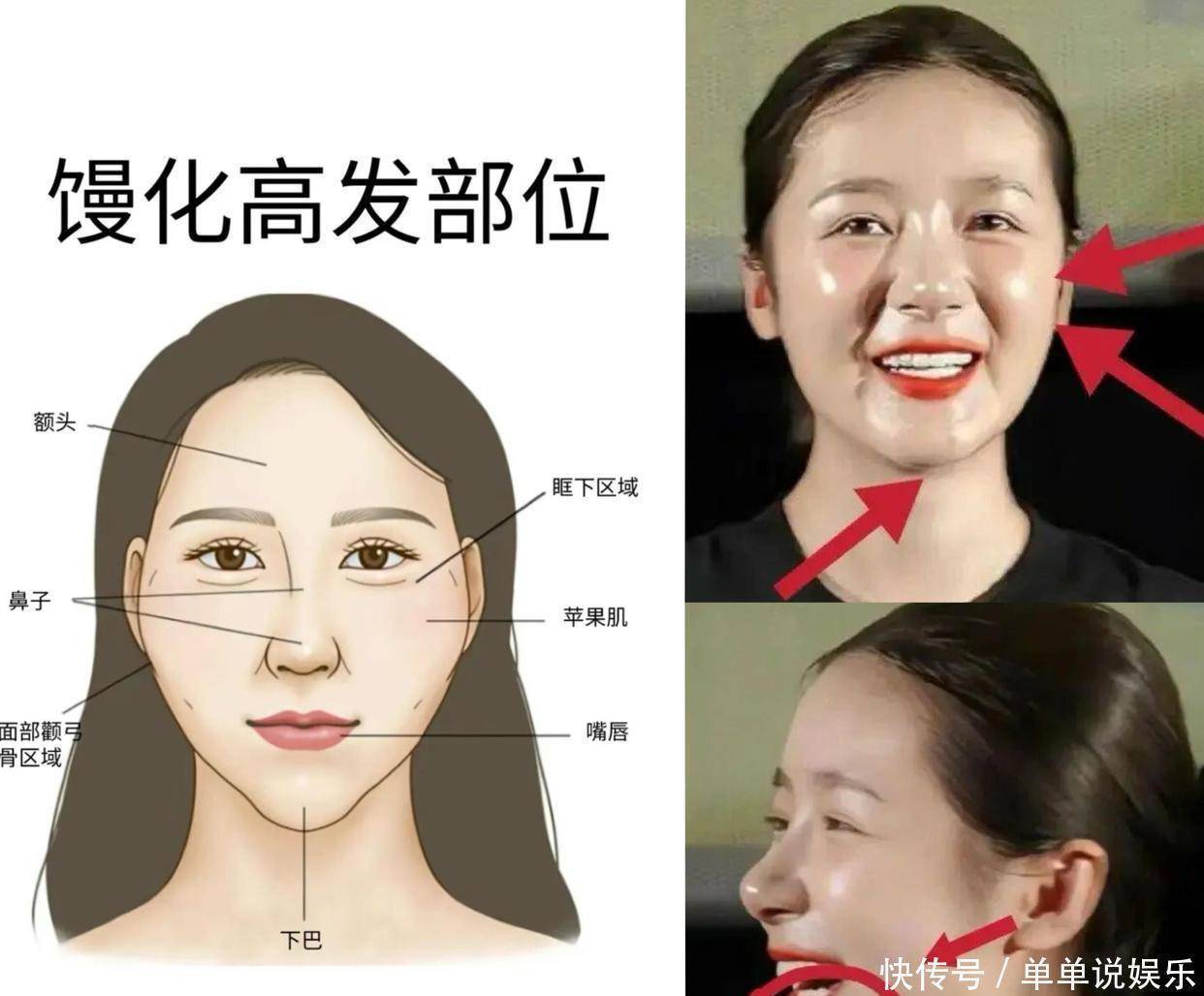 对馒化的妹子们来说,化妆的时候可别再大面积用高光啦,修容才是关键,尤其是发际线、颧骨下方和下巴这些地方,涂点修容粉可以让脸部线条更有层次感。别在额头和苹果肌上用高光提亮,否则会让面部的馒化感更明显。